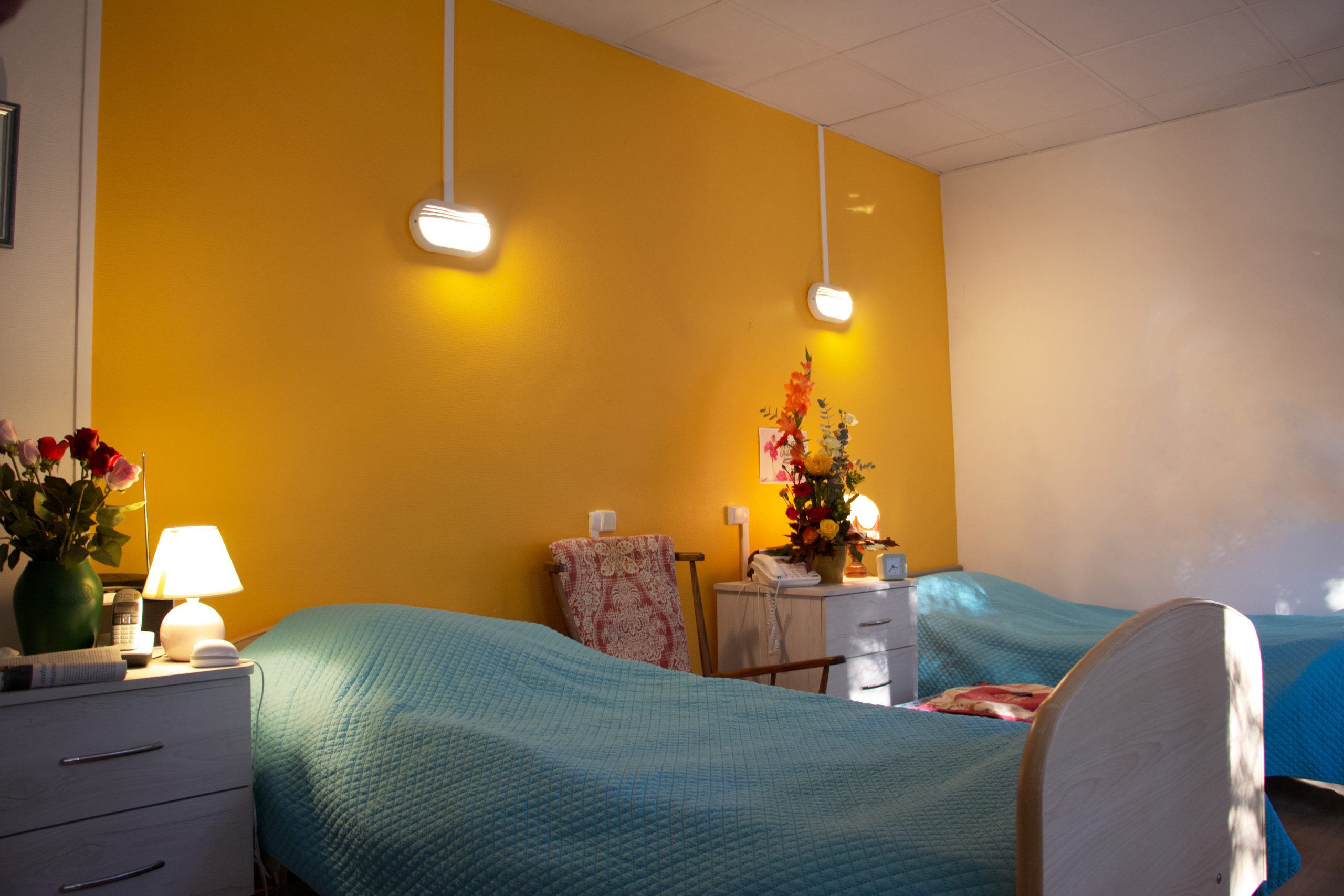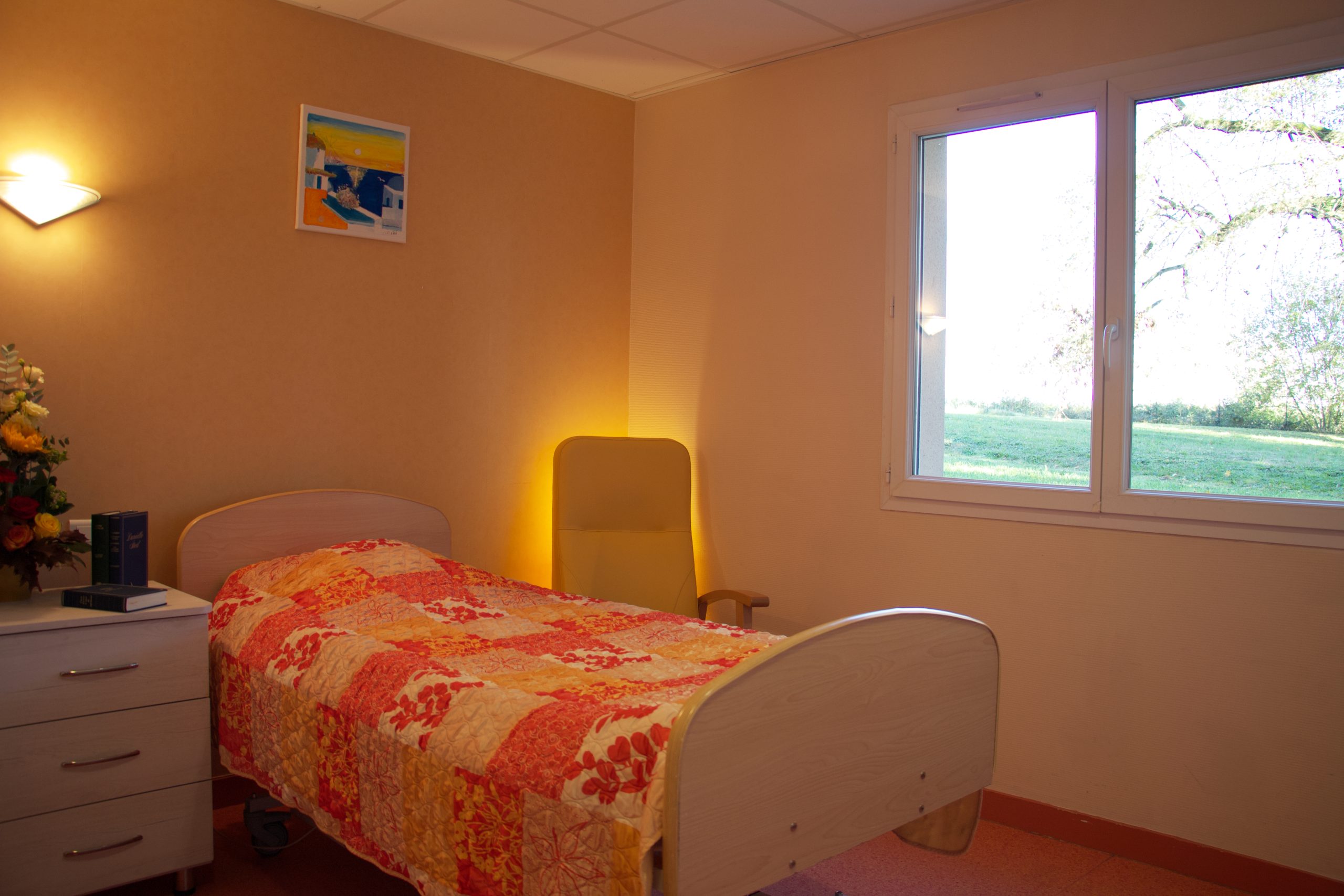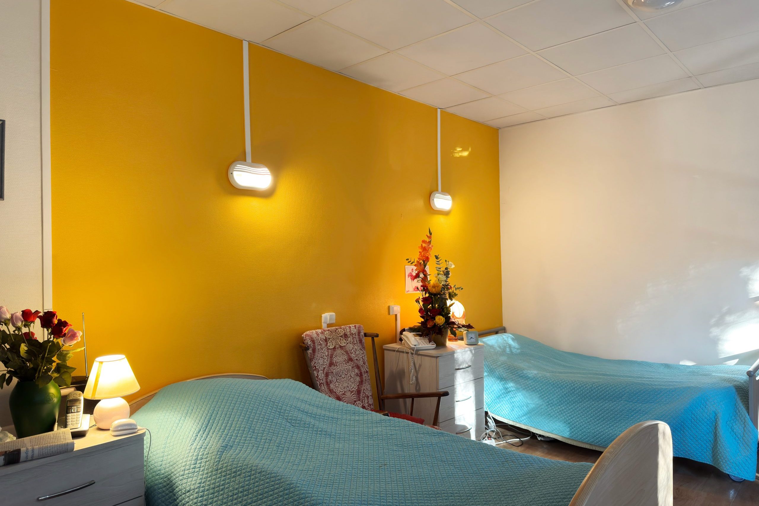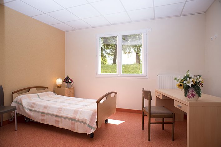 Les chambres simples offrent environ 18 m² de surface privative, et les chambres doubles environ 30 m². Les chambres sont conçues pour répondre aux besoins liés à la perte d’autonomie tout en garantissant confort, intimité et sécurité, et peuvent être aménagées selon les souhaits du résident afin de favoriser le bien-être au quotidien.