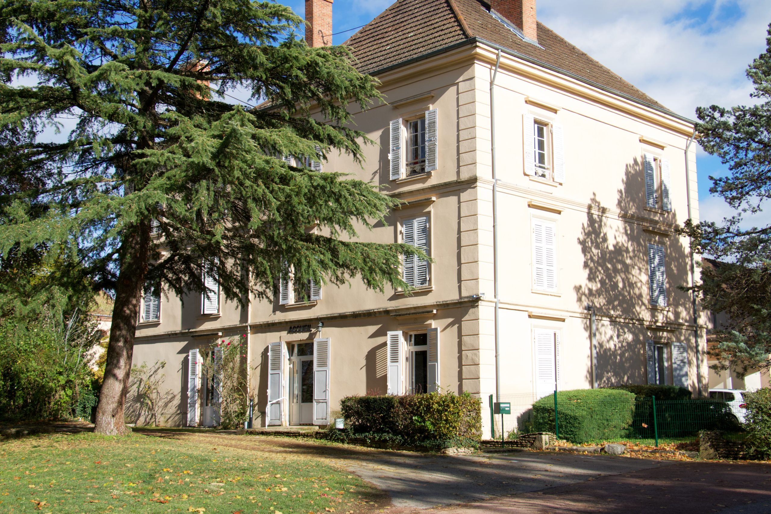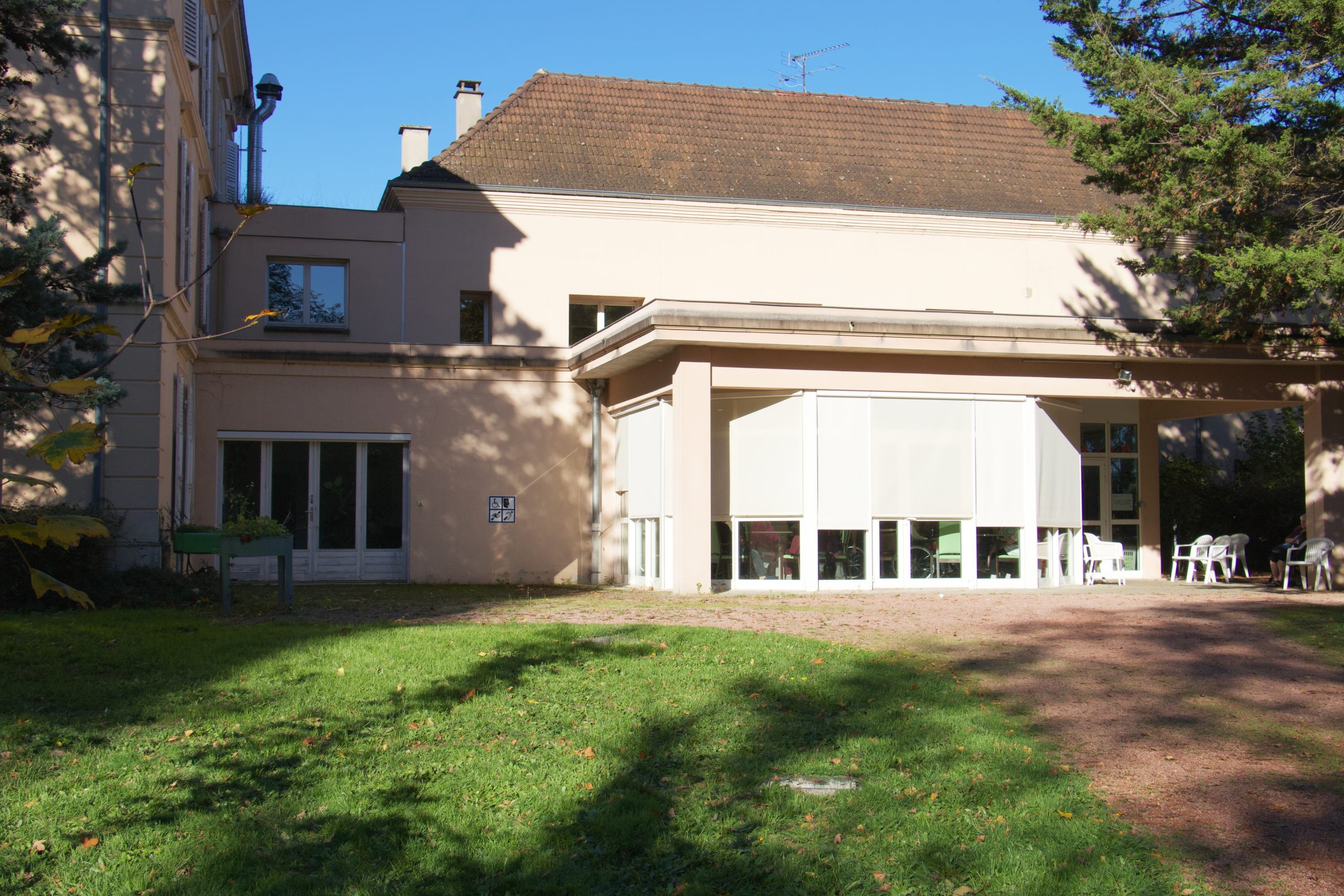 La Résidence Joie de Vivre est située dans un environnement verdoyant, au sein de la commune de Briennon. La salle de restaurant donne directement sur l’extérieur, avec une cour, une pelouse et une terrasse aménagée, agrémentée de bancs permettant aux résident(e)s de s’installer et de profiter de l’extérieur. L’ensemble s’inscrit dans un parc ombragé, offrant un cadre agréable et apaisant.